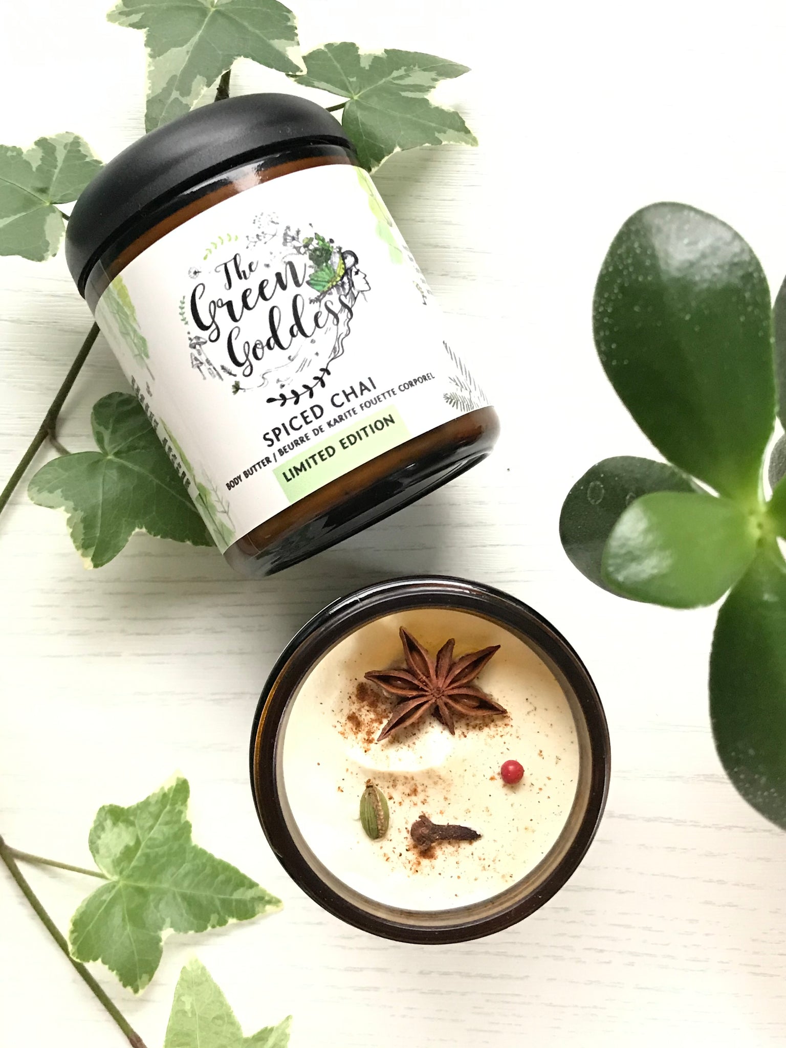 Ingredients/ingrediénts: *Butyrospermum parkii (Shea) Butter, *Cucurbita pepo (Pumpkin) Seed Oil, *Olea europaea (Olive) Fruit Oil, *Perilla ocymoides (Perilla) Seed Oil, *Cannabis sativa (Hemp) Seed Oil, *Zea mays (Corn) Starch, Tocopherol (Vitamin E), *Chai Flavour & Elettaria cardamomum (Cardamom) Seed Oil. / *Organic